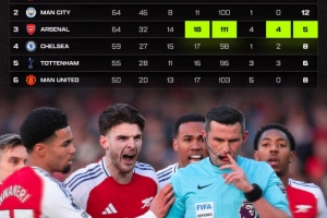 体育资讯4月10日讯 作为英超名哨,迈克尔·奥利弗是英足总力捧的主裁判。对于他的执法表现,著名阿森纳博主Connor Humm罗列出了一些对枪手不利的数据。