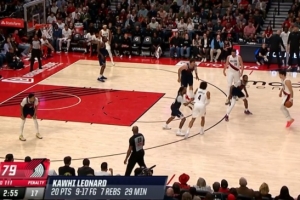 目前比赛进行到第三节,快船球星伦纳德凭借着一记自投自抢的翻身跳投将自己的本场得分达到20分,这也是他连续第57场拿到20+。
