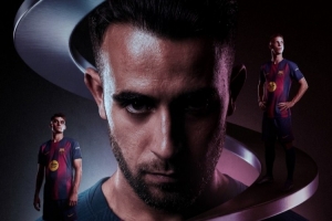 巴萨官方社媒发布了为此役制作的海报,埃里克·加西亚占据C位,奥尔莫、马丁出镜。