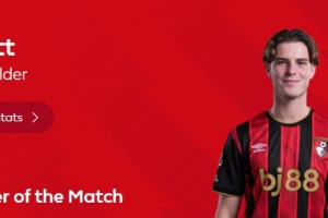 本场比赛伯恩茅斯中场斯科特表现活跃,打进球队第二粒进球,赛后他也当选英超官方评选出的本场比赛最佳球员。