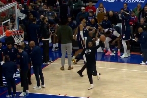 GIF-马克西暂停期间试图投一个,表情略夸张
